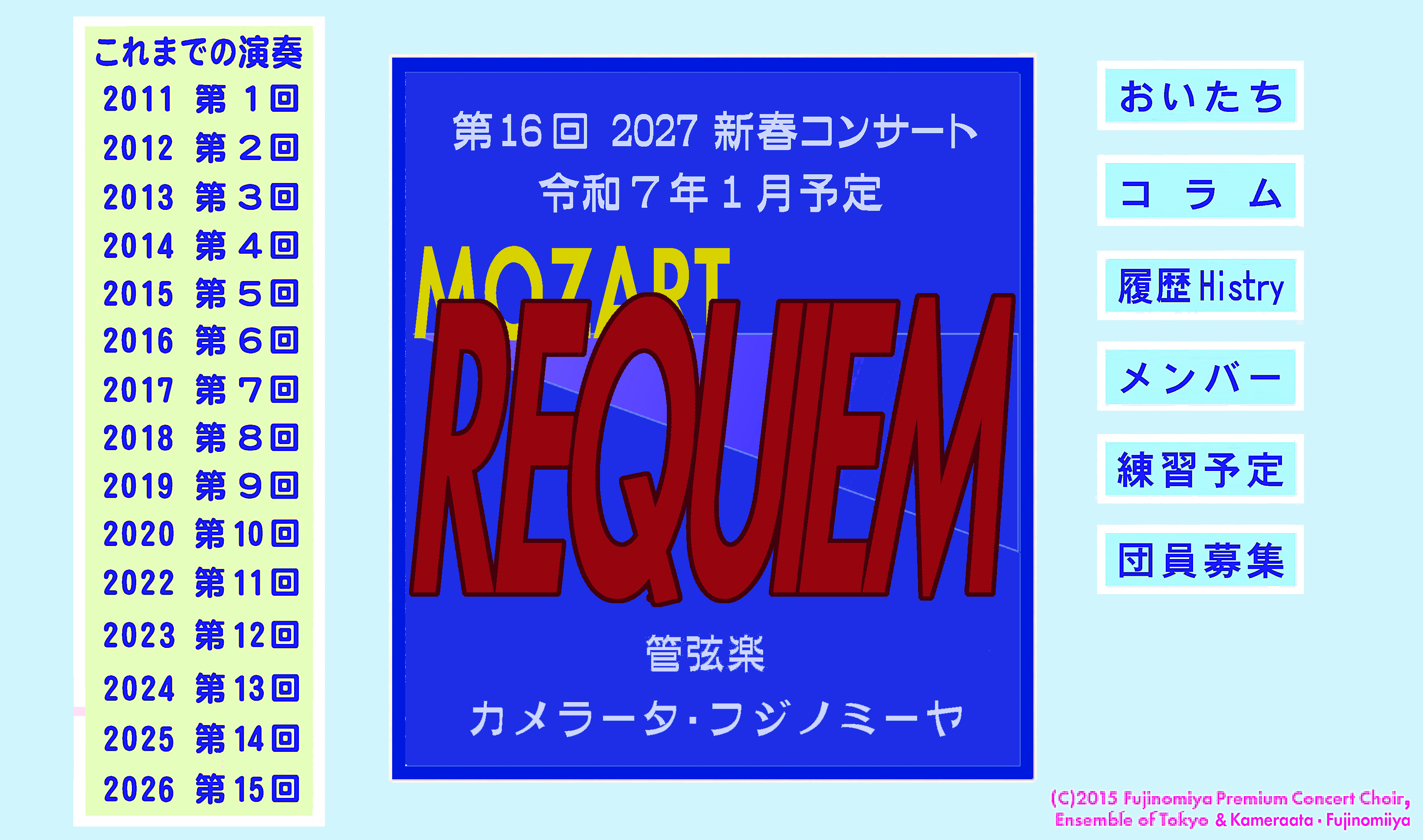 <富士宮プレミアムコンサート合唱団ホームページへようこそ♪多くの市民に参加いただき合唱・音楽を通じて西欧文化の発信を続けています♪>